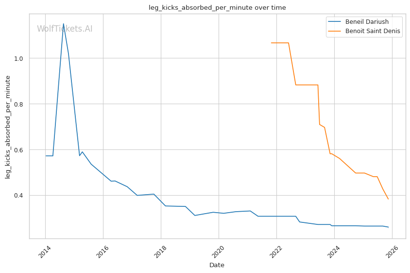 Saint Denis's calf kick vulnerability matters less here because Dariush isn't a volume leg kicker. His occasional low kicks won't accumulate enough damage to disrupt Saint Denis's rhythm. Conversely, Saint Denis's left high kick addresses Dariush's primary defensive gap—his inability to handle strikes to the head.