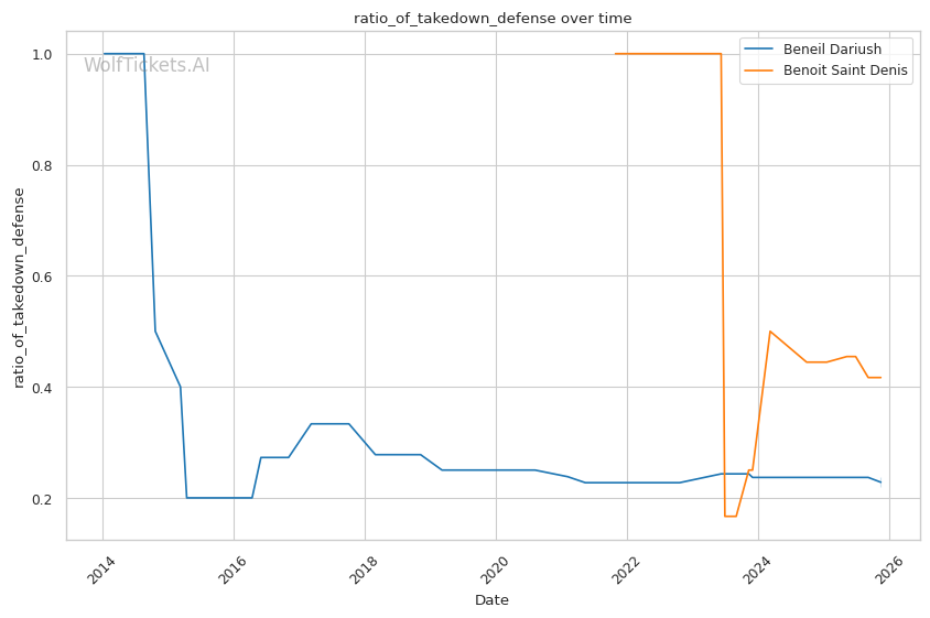 Vulnerability to Elite Guard Players: The Renato Moicano fight exposed his ground game against elite grapplers. Moicano completely overwhelmed him with traditional technique, suggesting Saint Denis's grappling success relies heavily on physical attributes and unorthodox movements that confuse standard guard players. Against textbook excellence executed at high speed, he lacks systematic defensive structure.