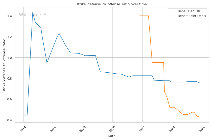 | Significant Striking Defense to Offense Ratio | 93.86% | 61.88% | 103.28% | |