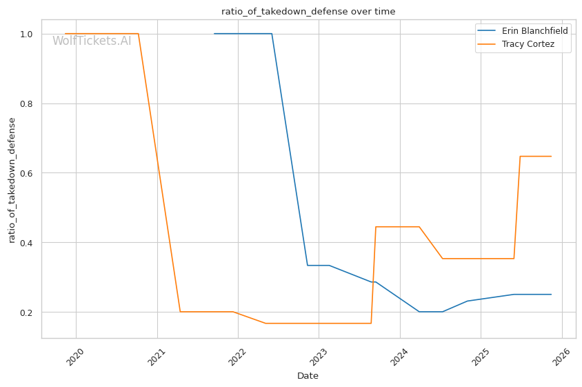 Cortez's 64.7% takedown defense won't hold up against Blanchfield's 5.85 takedown attempts per fight and relentless chain wrestling. Even when Cortez stuffs initial attempts, Blanchfield's persistence—demonstrated against Santos when she continued seeking opportunities despite repeated failures—will eventually break through Cortez's defense.
