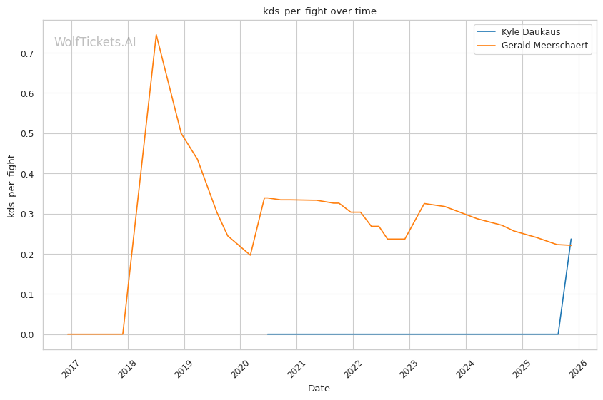 This suggests some caution—Daukaus's fights can deviate from expectations, particularly when facing power strikers. However, Meerschaert's consistent recent losses align with the model's assessments of his declining form.
