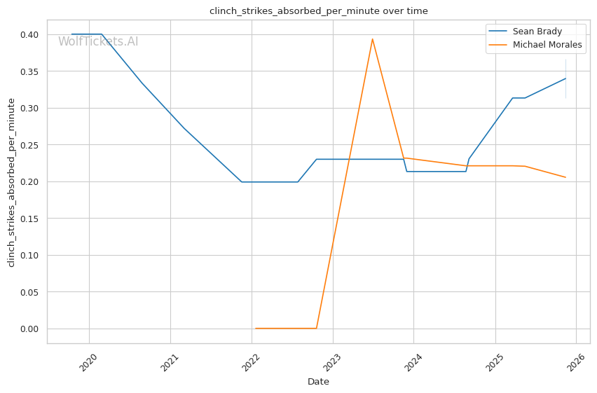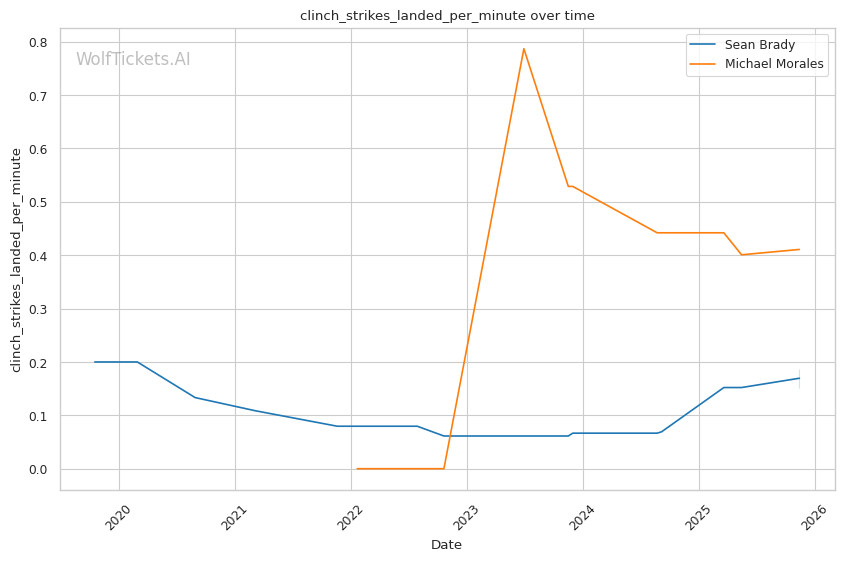 The clinch presents Brady's clearest path to victory. Morales' over-under work against Burns was impressive, but Burns is a diminished fighter at 38 years old. Brady's systematic half-guard passing and Kimura control will test Morales' completely unproven ground game. Once Brady establishes top position, Morales has shown nothing suggesting he can sweep, submit, or even effectively defend against Brady's methodical advancement.