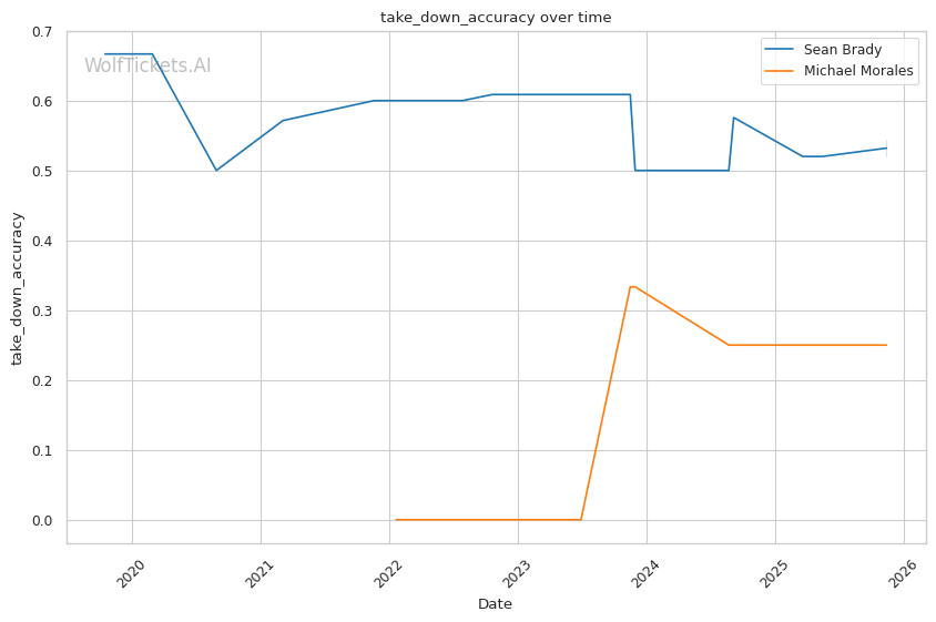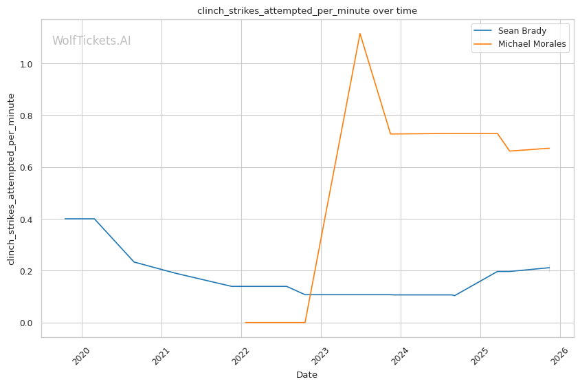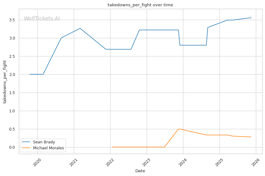 Championship rounds: This fight likely doesn't see round five. Brady's submission rate (1.13 per fight recently) suggests he finishes opponents once he establishes control. Morales' knockout power means he's always dangerous, but his defensive flaws become more pronounced as fatigue sets in. Brady's systematic approach—takedown, pass, submit—should overwhelm Morales' limited grappling experience.