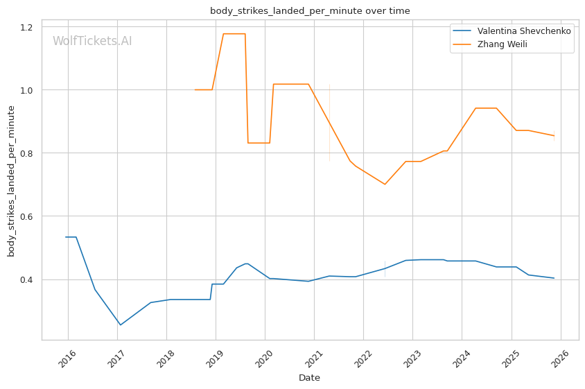 | Stat | Valentina Shevchenko | Zhang Weili | Weight Class Average | |