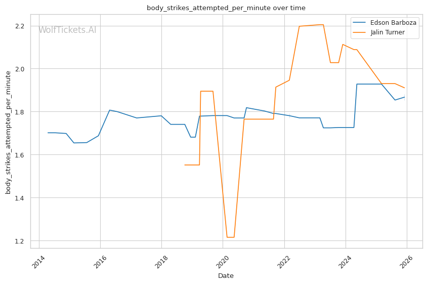 | Body Strikes Attempted per Minute | 1.880 | 1.911 | 1.333 | |