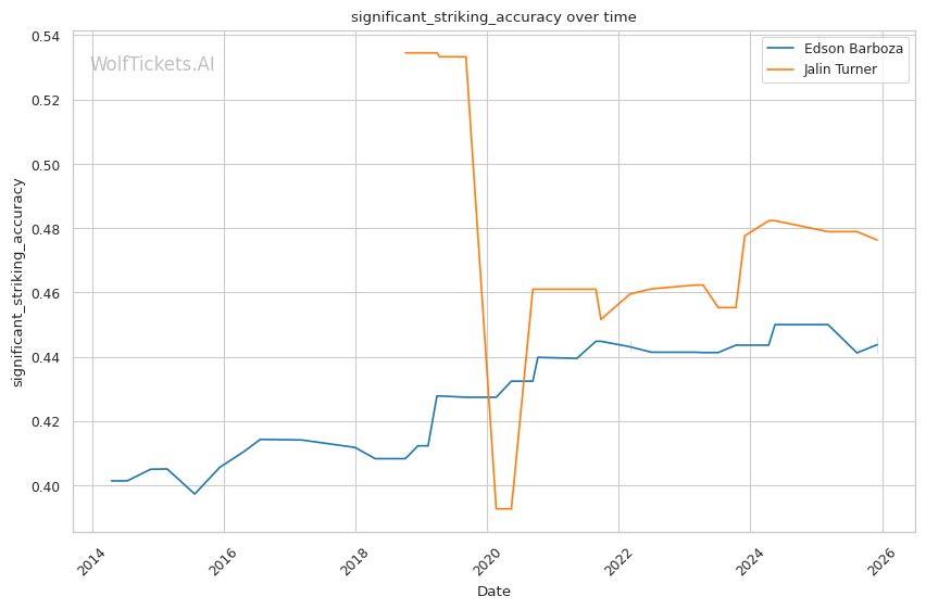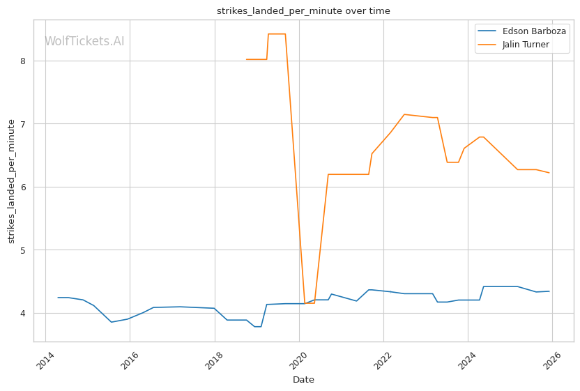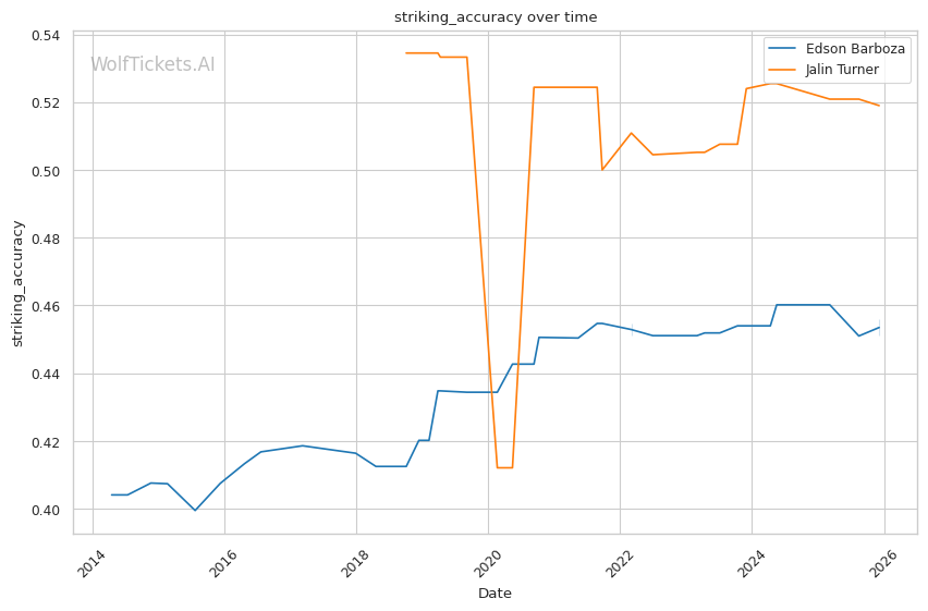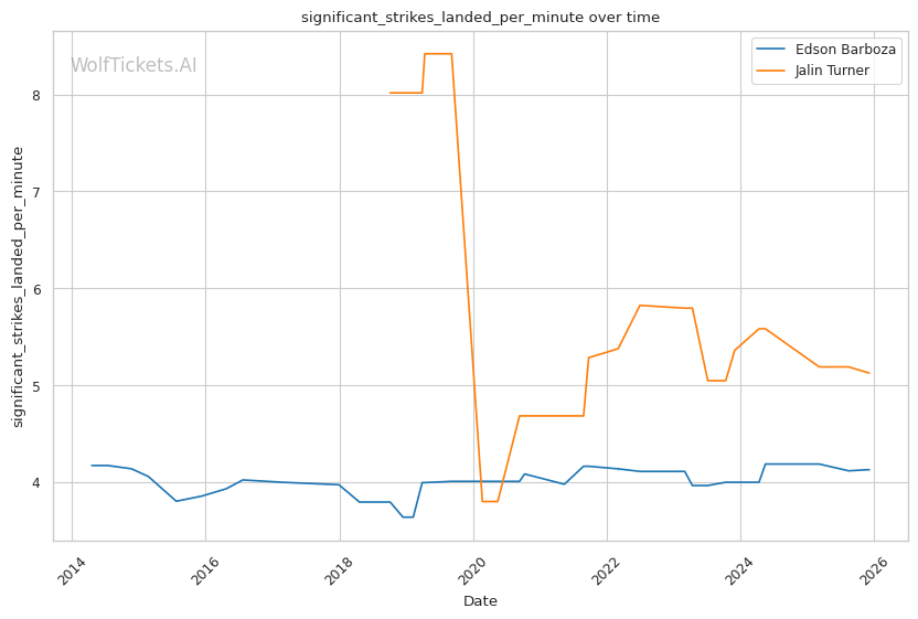 | Stat | Edson Barboza | Jalin Turner | Weight Class Average | |