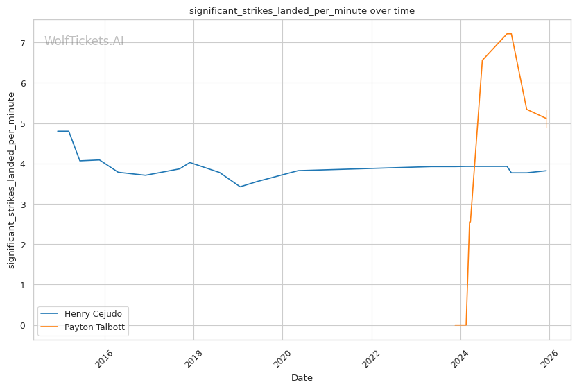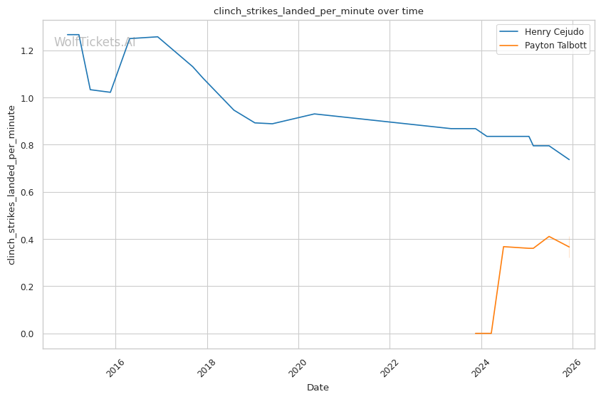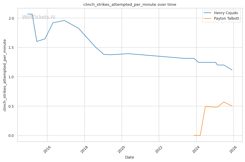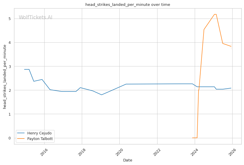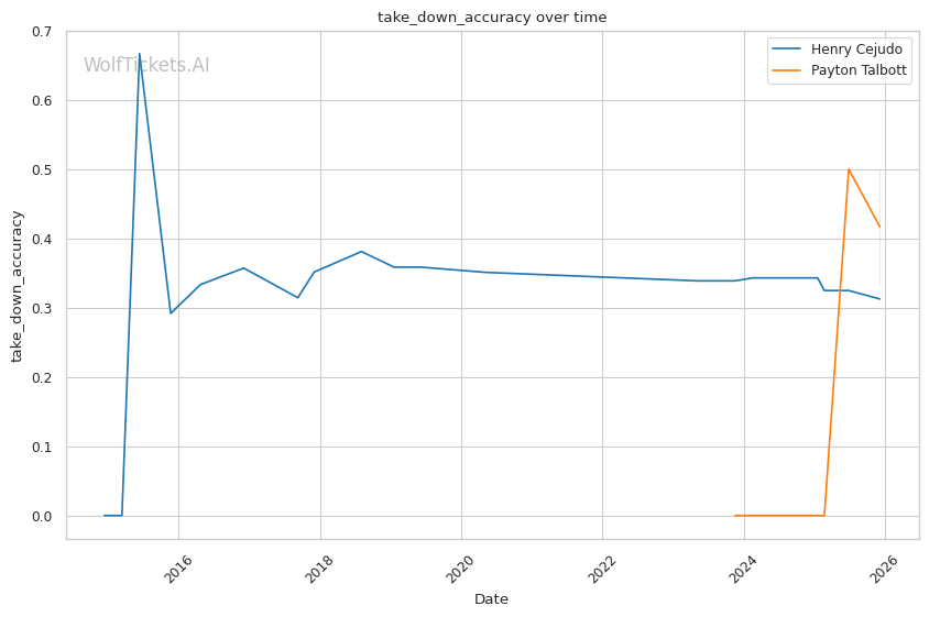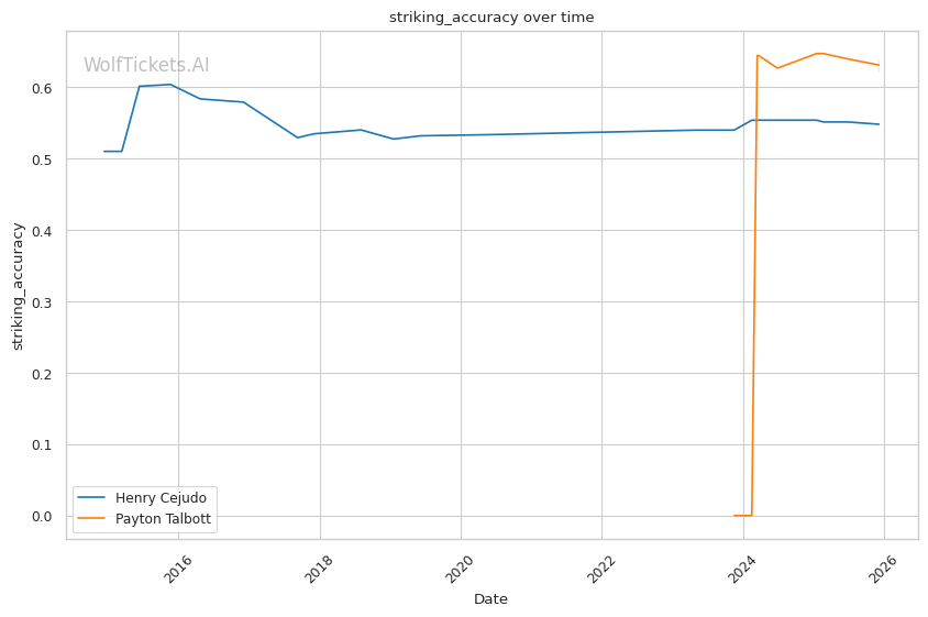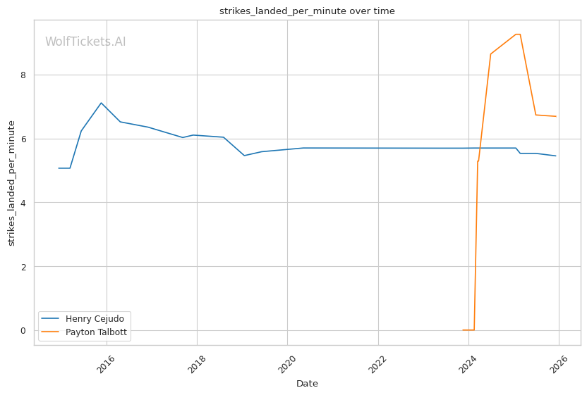 | Stat | Henry Cejudo | Payton Talbott | Weight Class Average | |