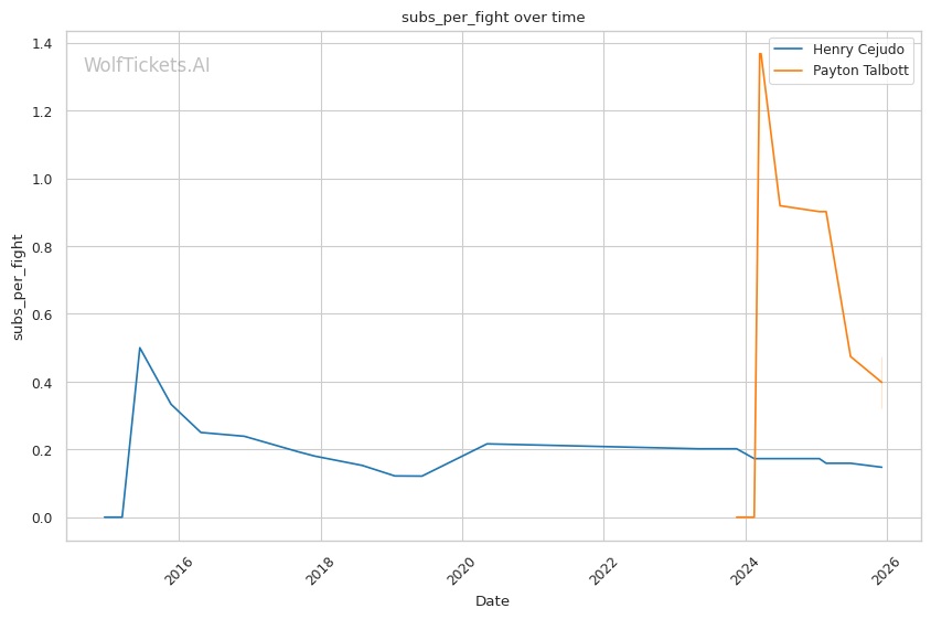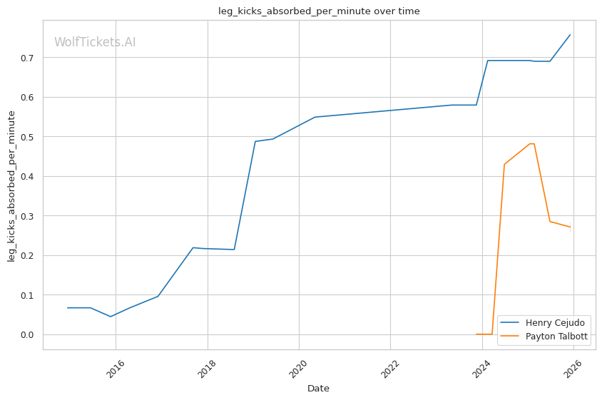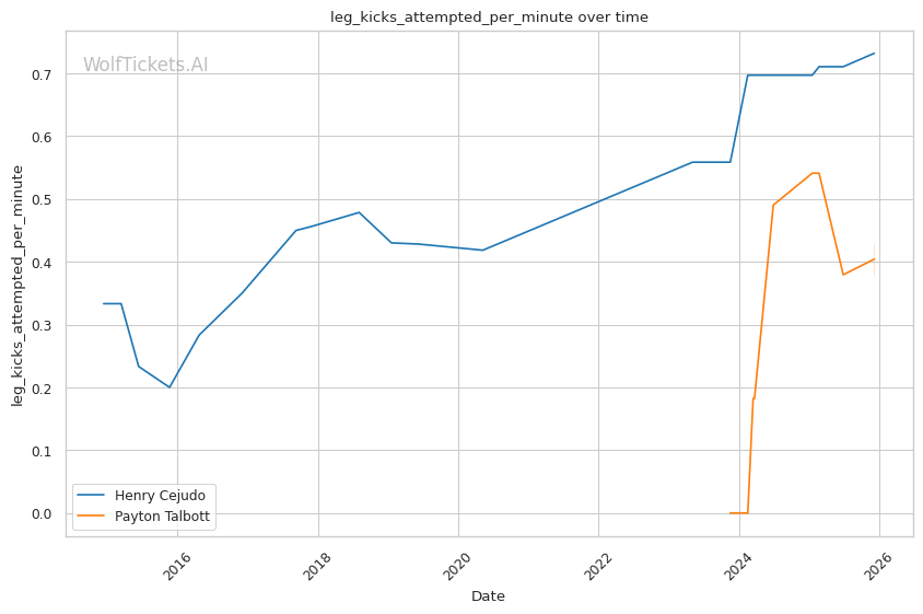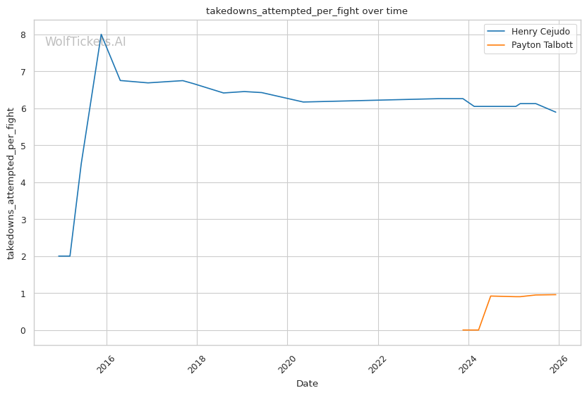 Recent Takedowns Attempted per Fight increased the score by 4.0—Talbott's wrestling attempts suggest he's not purely a striker, adding dimensions to his game.