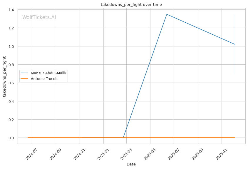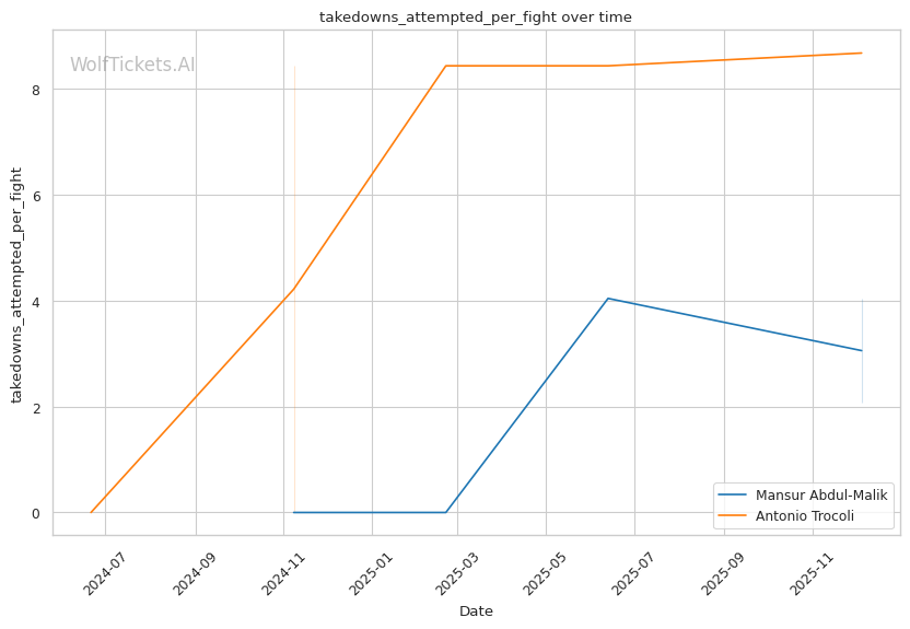 Desperation Takedown Attempts: When tired against Magomedov, Trocoli lunged forward for a takedown with no setup or level change. Magomedov secured a double collar tie and delivered knees that ended the fight. Abdul-Malik's wrestling pedigree and counter-punching timing could produce a similar finish.