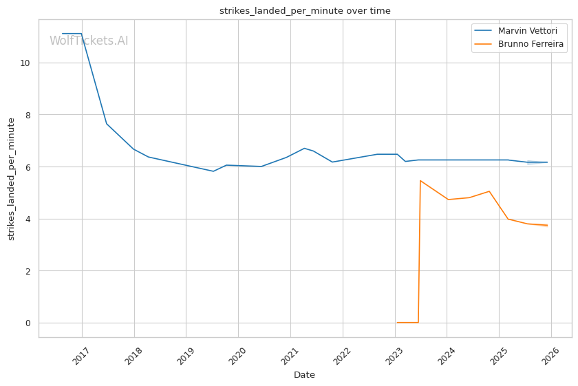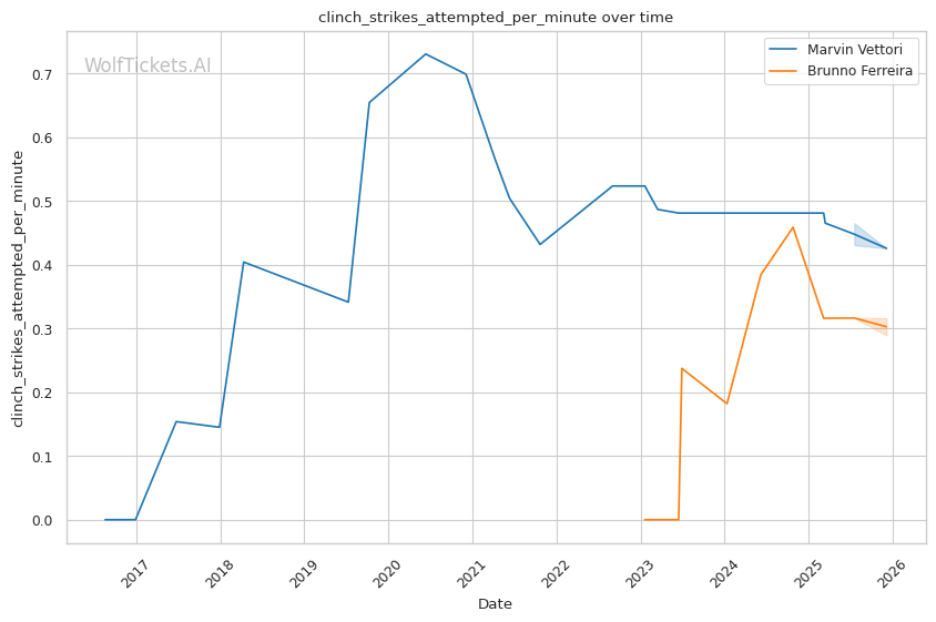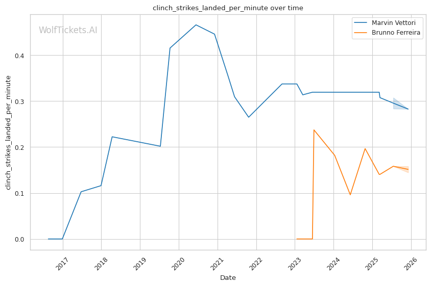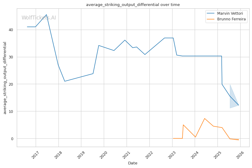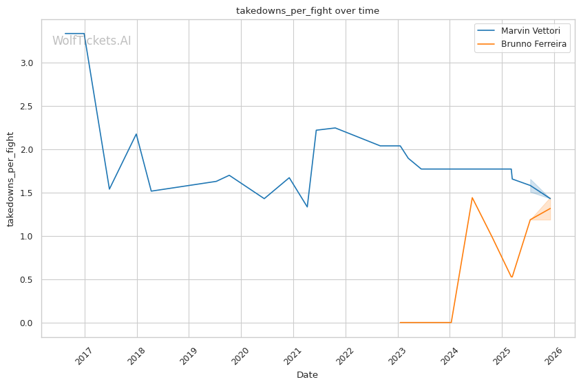 Ferreira's pattern recognition vs. Vettori's predictable pressure. Vettori walks forward and throws volume. Ferreira reads patterns and times counters. This could produce a spectacular knee knockout or a grinding decision.