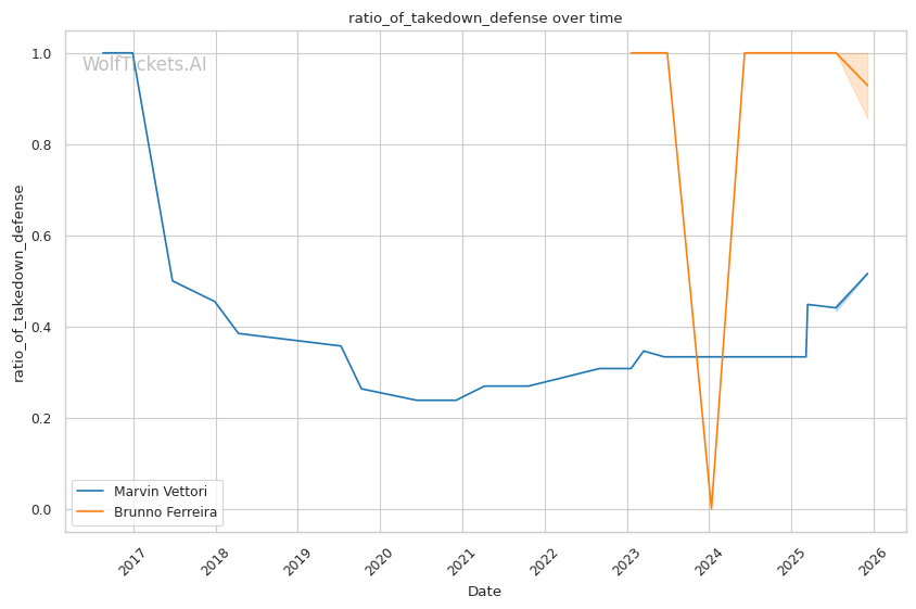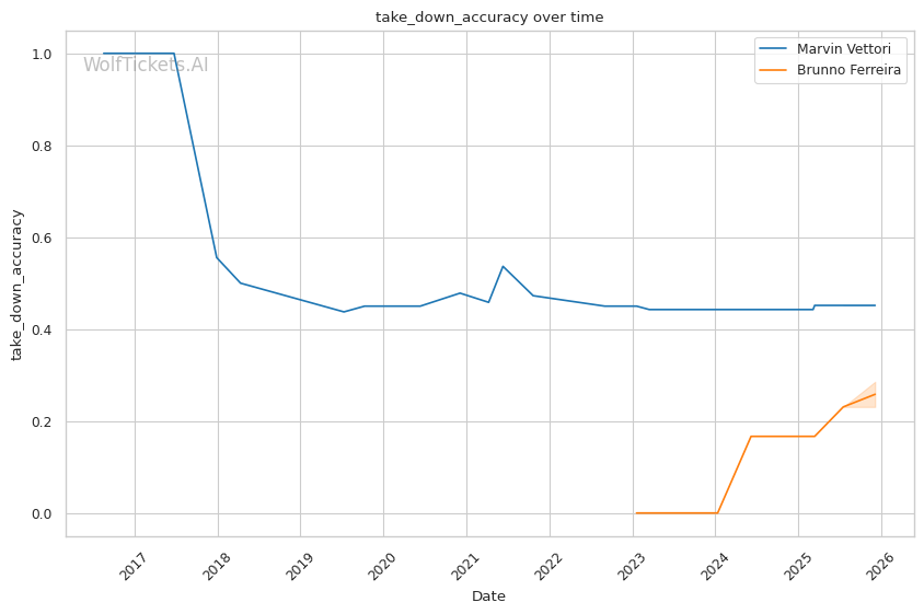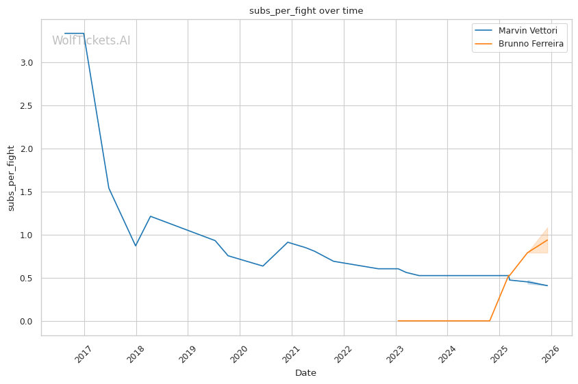 Ferreira's submission evolution adds danger. Vettori's guillotine defense is solid, but Ferreira's armbar from scrambles is a newer threat that Vettori may not have prepared for.