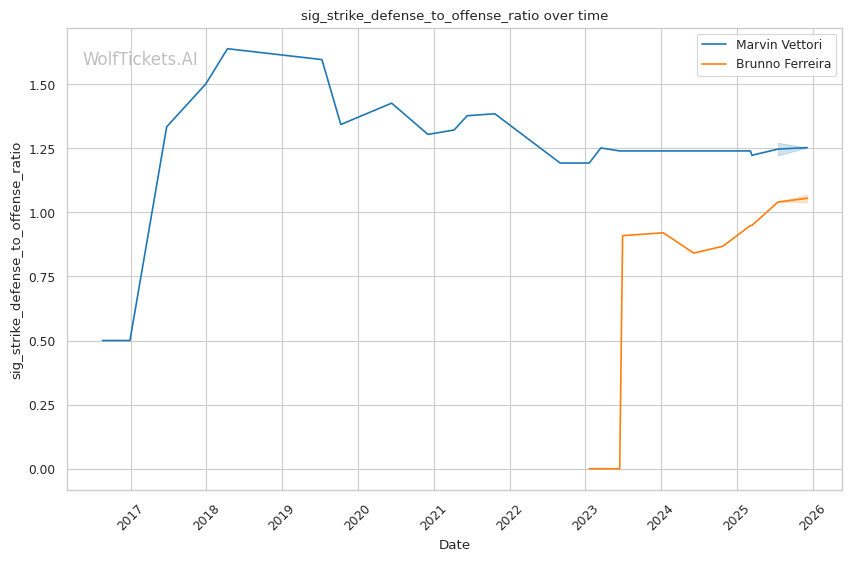 | Significant Striking Defense to Offense Ratio | 125.22% | 106.87% | 99.60% | |