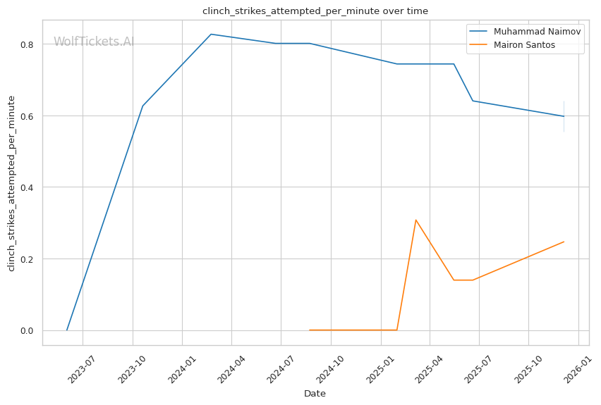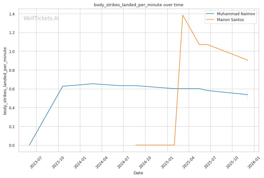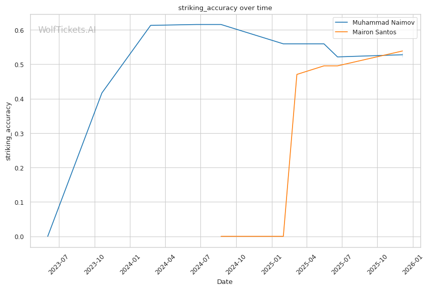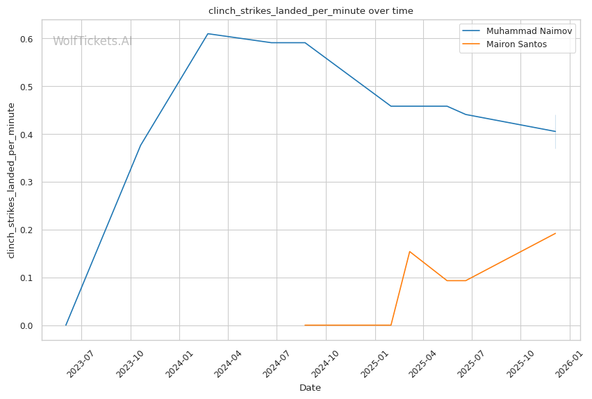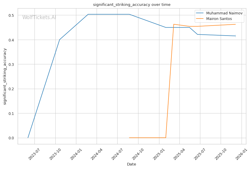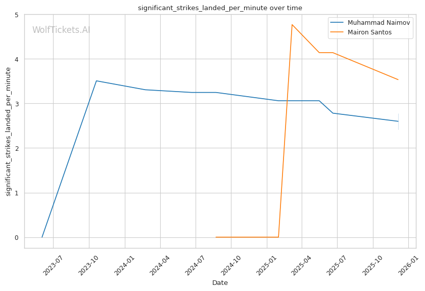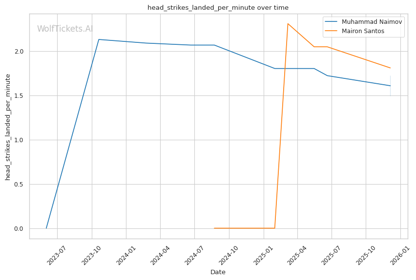 | Stat | Muhammad Naimov | Mairon Santos | Weight Class Average | |