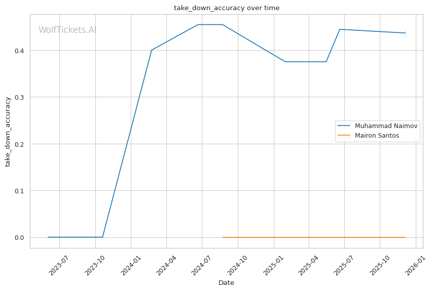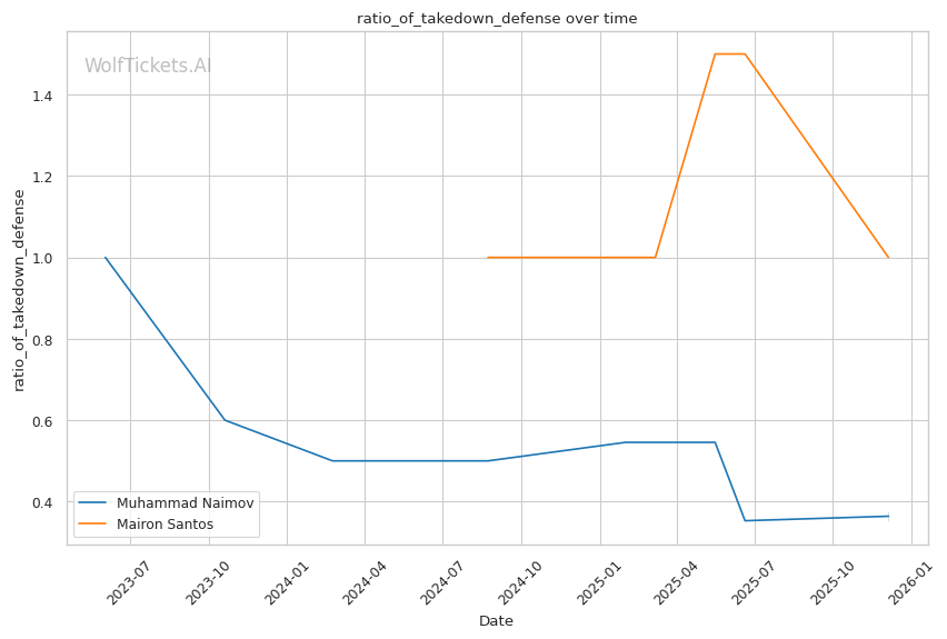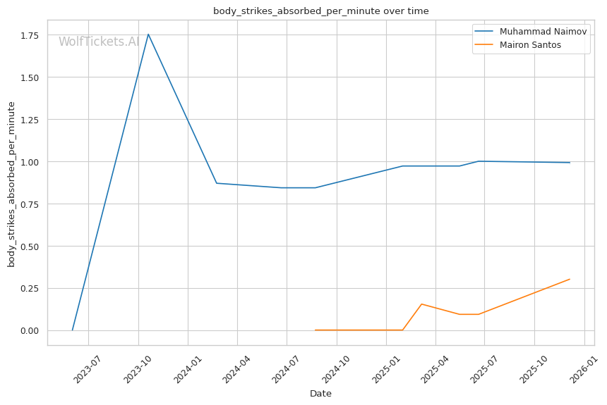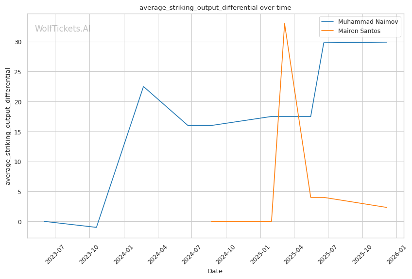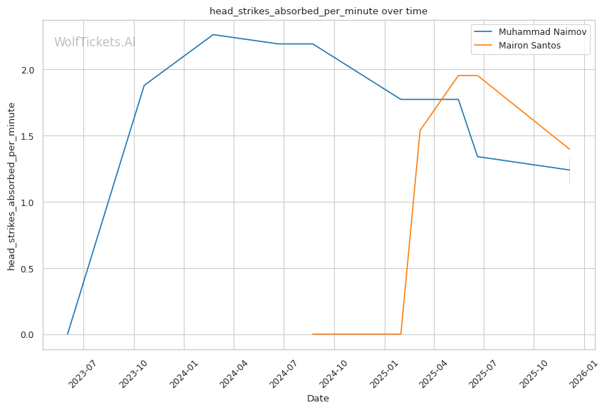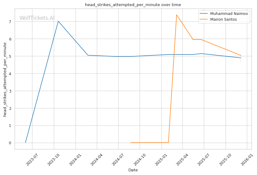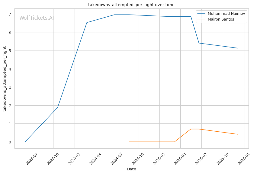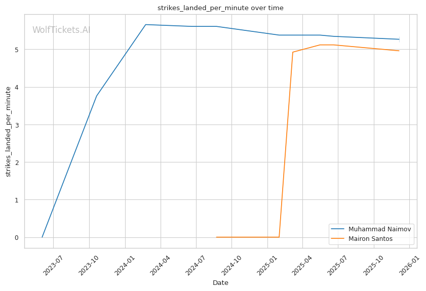 | Stat | Muhammad Naimov | Mairon Santos | Weight Class Average | |