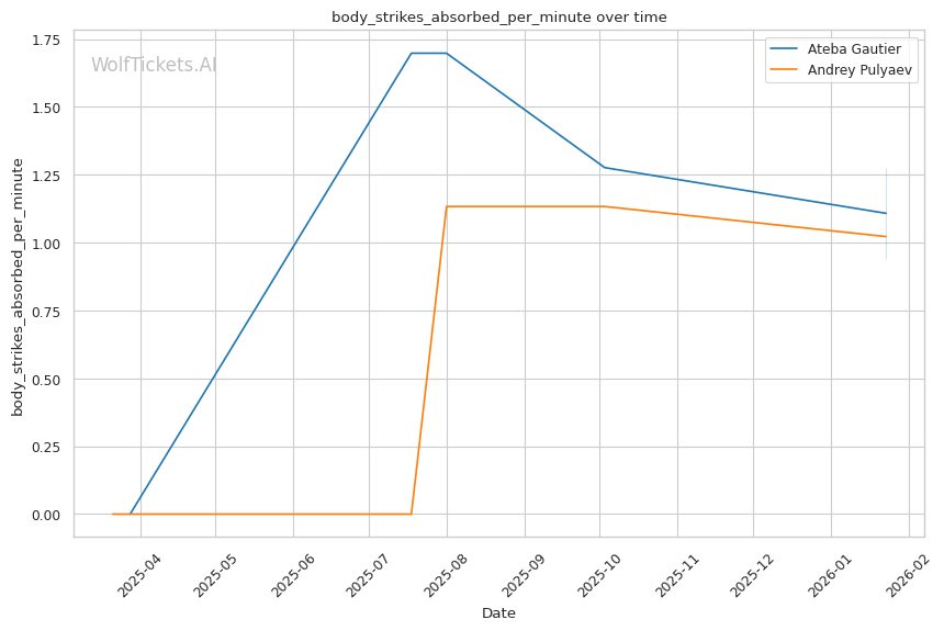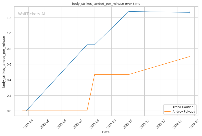 | Stat | Ateba Gautier | Andrey Pulyaev | Weight Class Average | |