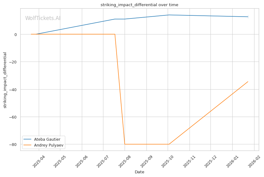 For Pulyaev, the model predicted Nick Klein to win with 0.70 confidence, but Pulyaev pulled off the upset via second-round TKO. This is worth noting—Pulyaev has shown he can defy expectations when opponents gas out. However, the circumstances were specific: Klein emptied his tank with unsustainable pressure. Gautier doesn't fight that way; he's efficient and finishes before cardio becomes a factor.