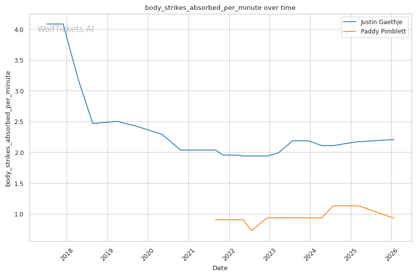 The Holloway fight showed Gaethje can be systematically broken down by body work and rhythm changes. Pimblett doesn't have Holloway's boxing, but his grappling pressure could create similar cumulative damage. Gaethje's submission defense remains a liability—Oliveira ran through him on the mat, and Khabib submitted him in under two rounds.