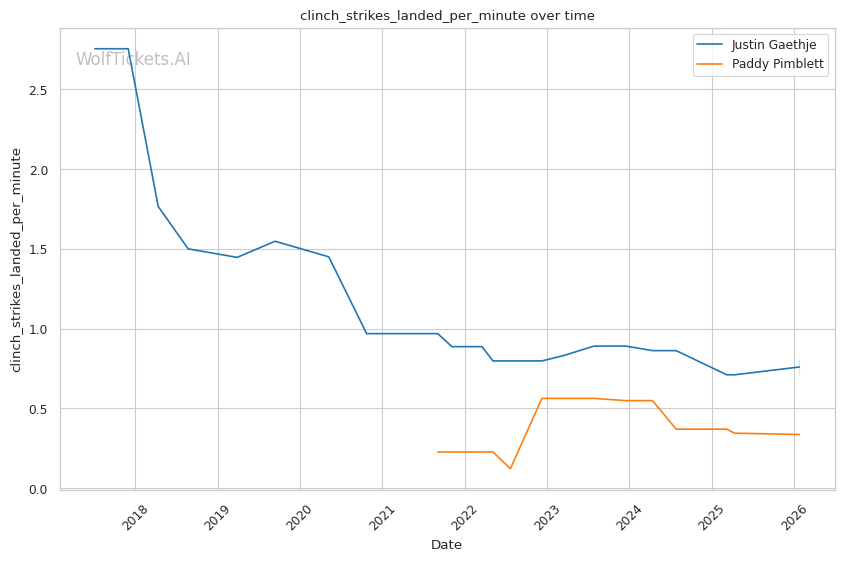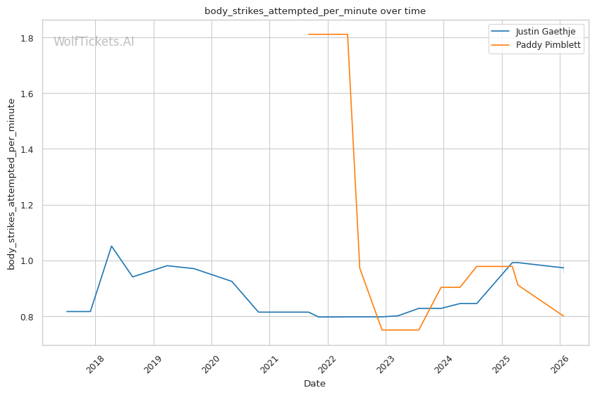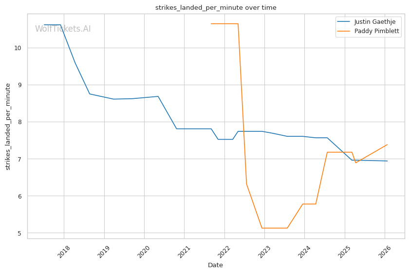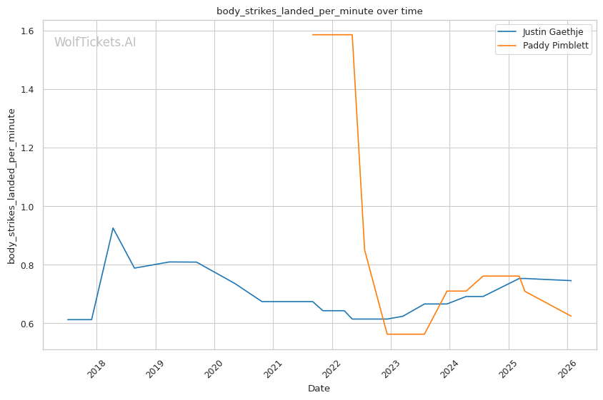 | Stat | Justin Gaethje | Paddy Pimblett | Weight Class Average | |