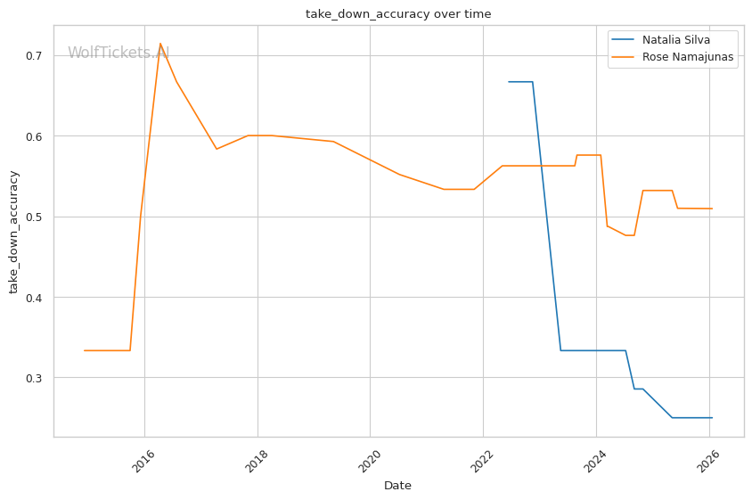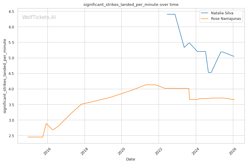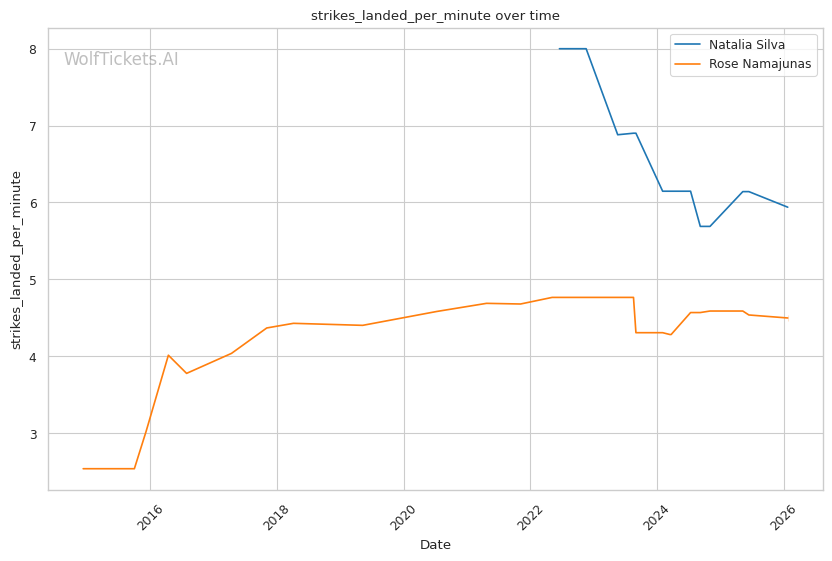 | Stat | Natalia Silva | Rose Namajunas | Weight Class Average | |