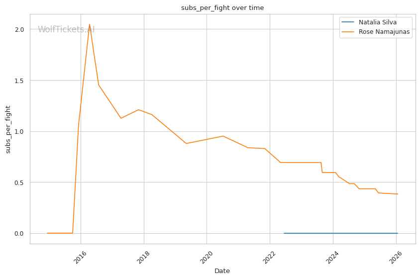 Rose's stance-switching and varied angles could confuse Silva's defensive reads. Silva tends to back herself to the fence and throw three punches before running out the side door—Rose's counter left hook could time these exits. Rose's grappling threat adds a dimension Silva hasn't faced at this level. If Rose can secure takedowns, Silva's submission defense in guard was nearly exploited by Bleda's triangle choke.