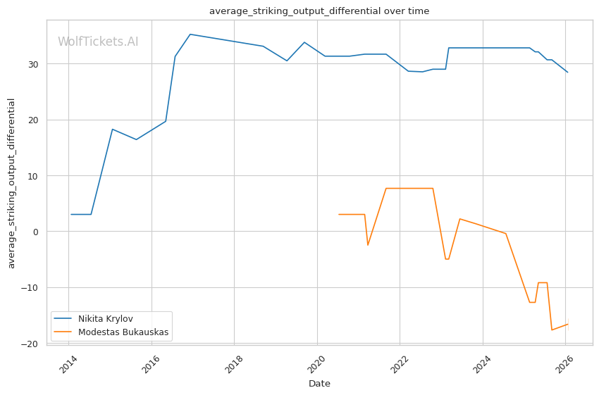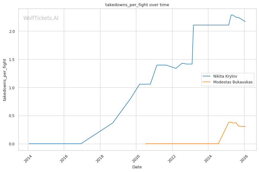 This matchup heavily favors Bukauskas's evolved skillset against Krylov's deteriorating form.