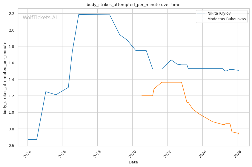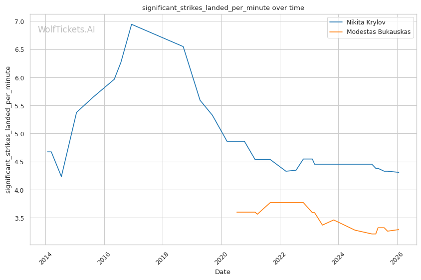 | Stat | Nikita Krylov | Modestas Bukauskas | Weight Class Average | |