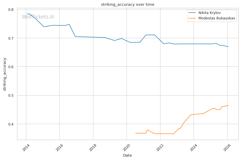 Krylov's submission vulnerabilities matter. If this goes to the ground and Krylov attempts his usual guillotine hunting, Bukauskas's improved grappling could capitalize.
