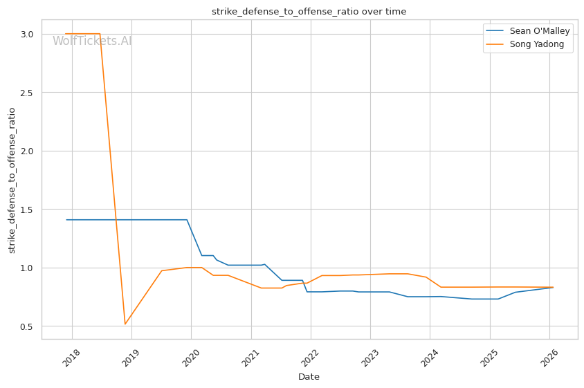| Significant Striking Defense to Offense Ratio | 82.44% | 109.02% | 111.61% | |