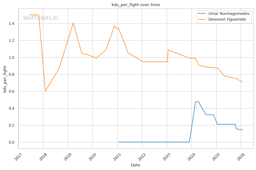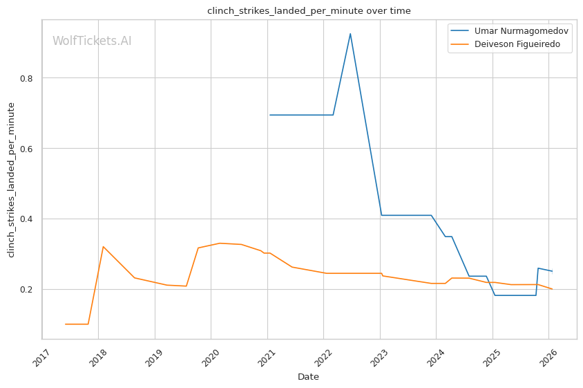 Late Rounds: Figueiredo's recent win percentage is 33%—he's lost two of his last three. His cardio held up against Yan for five rounds, but he was comprehensively outworked. If this fight goes deep, Umar's grappling control should dominate unless Figueiredo can land something significant.