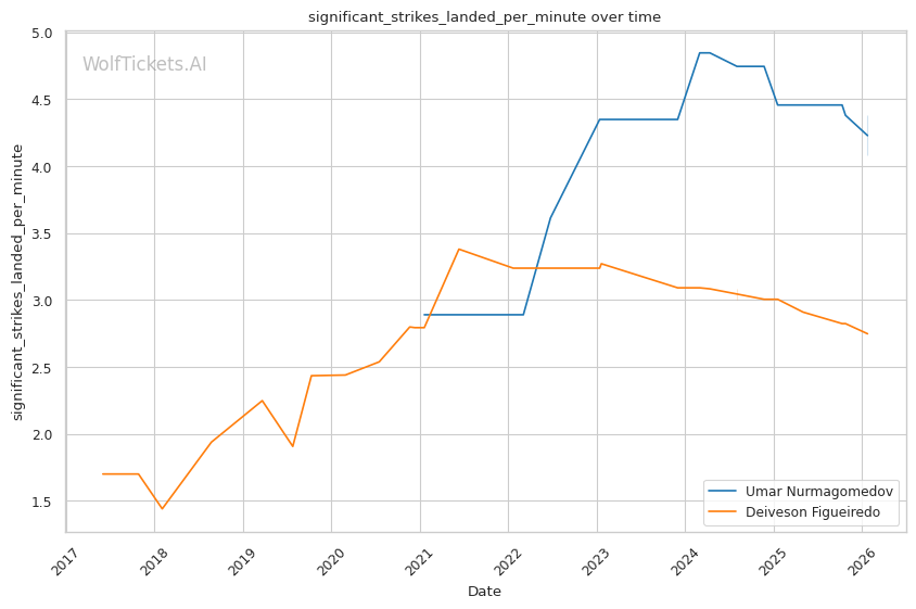 | Stat | Umar Nurmagomedov | Deiveson Figueiredo | Weight Class Average | |