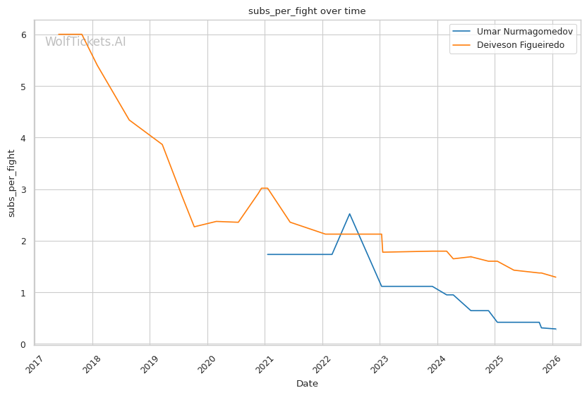 Early Rounds: Expect Umar to establish his kicking game and look for reactive takedowns. Figueiredo will try to time his pull-counter-to-double-leg when Umar advances. The first successful takedown will be critical—if Umar gets top position early, he'll look to accumulate control time and threaten the back.