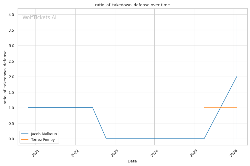 Mid-Fight Adjustments: If Finney secures takedowns, Malkoun has shown he can get back to his feet and reset. Against Alhassan, he popped right back up after being taken down. Finney's lack of offensive output from top position means Malkoun can work without urgency.