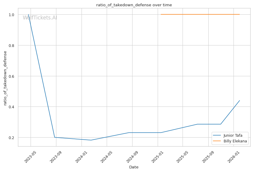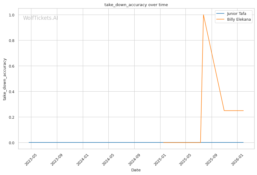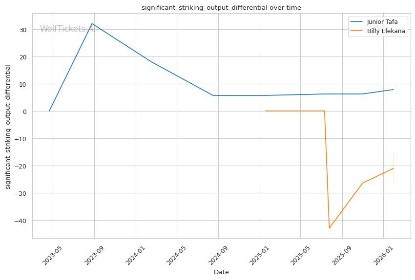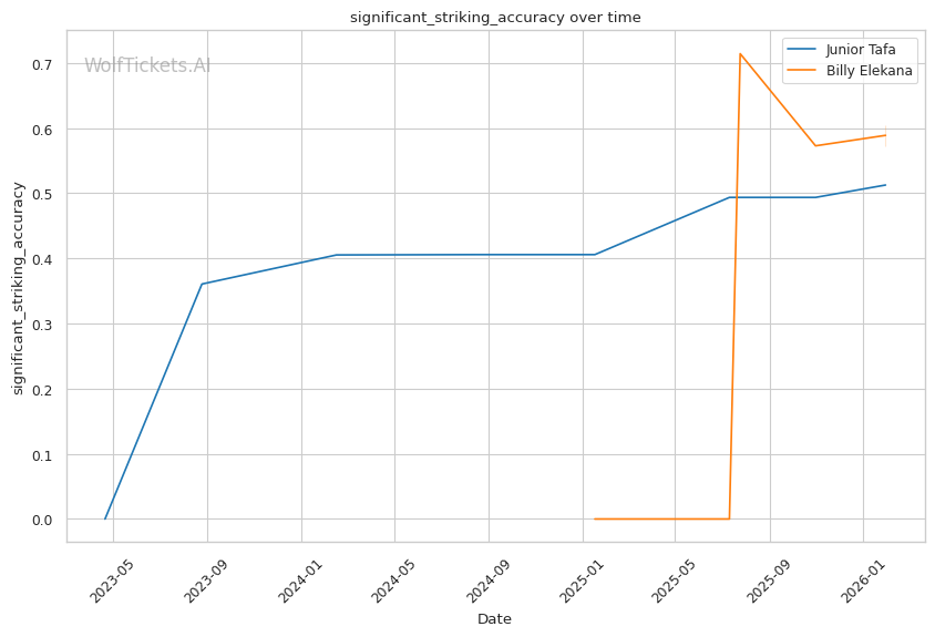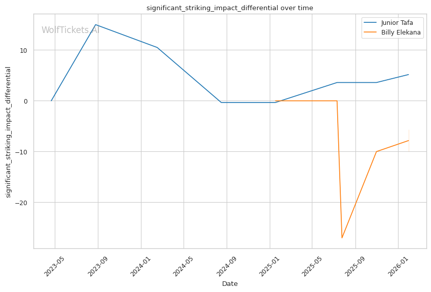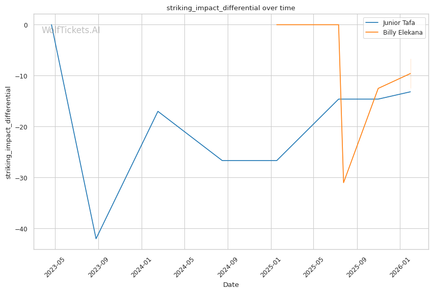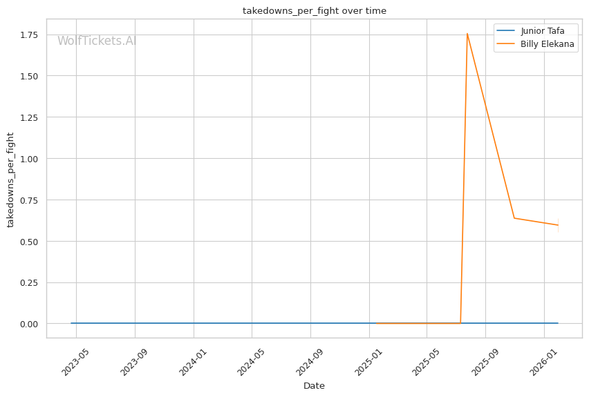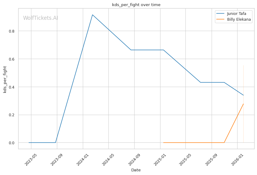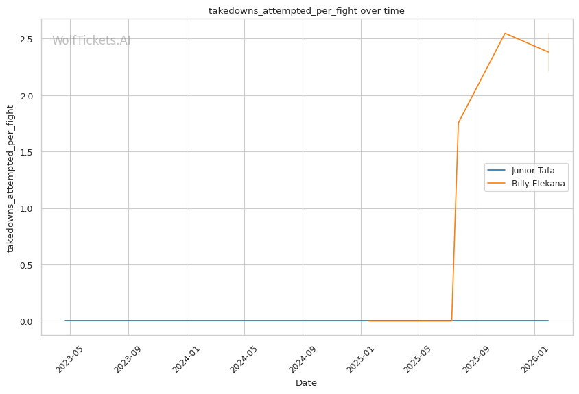 Billy Elekana's patient counter-striking, finishing instincts, and transitional grappling make him a bad matchup for Junior Tafa. Tafa's cardio issues, recent submission losses, and fundamental grappling errors give Elekana clear paths to victory. If Tafa can't land the early knockout, this fight likely ends with Elekana finding a counter, following to the ground, and finishing. WolfTicketsAI has Elekana winning, and the data supports that pick.