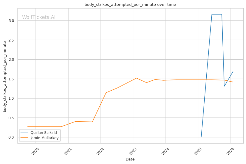 | Body Strikes Attempted per Minute | 1.684 | 1.364 | 1.330 | |
