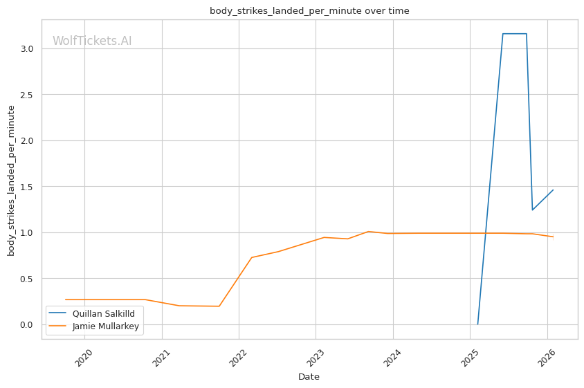 | Stat | Quillan Salkilld | Jamie Mullarkey | Weight Class Average | |