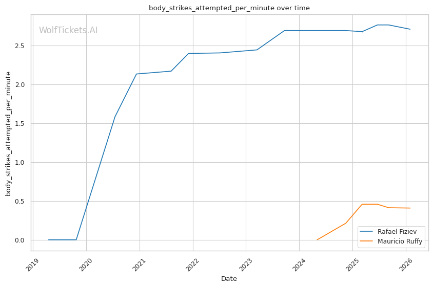 At 75 inches, he holds a 4-inch reach advantage over Fiziev. That length matters for establishing his jab and keeping opponents at his preferred range. His recent striking output differential shows he's not a volume fighter. He picks his shots.