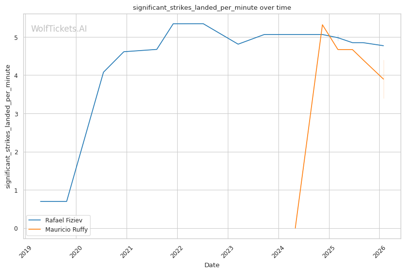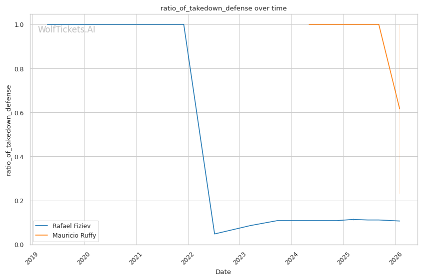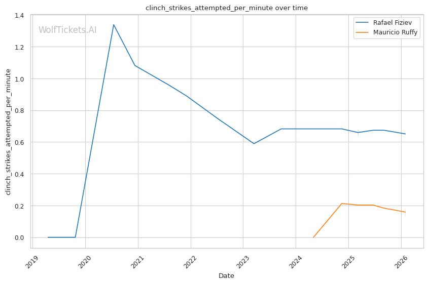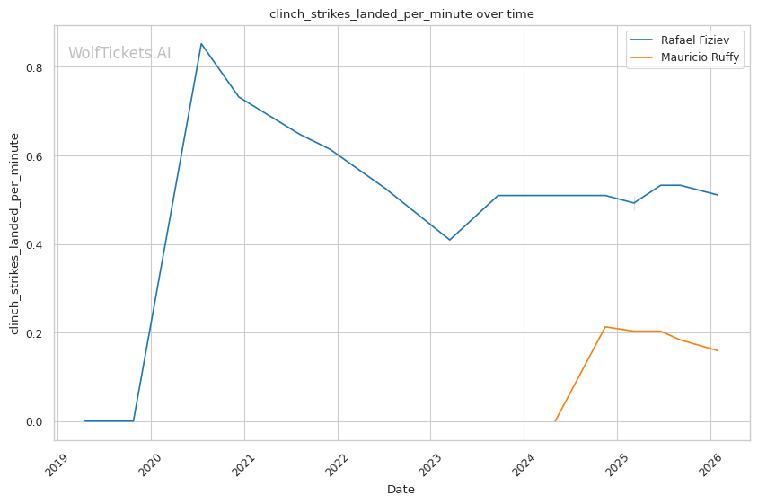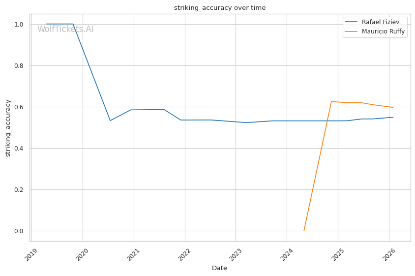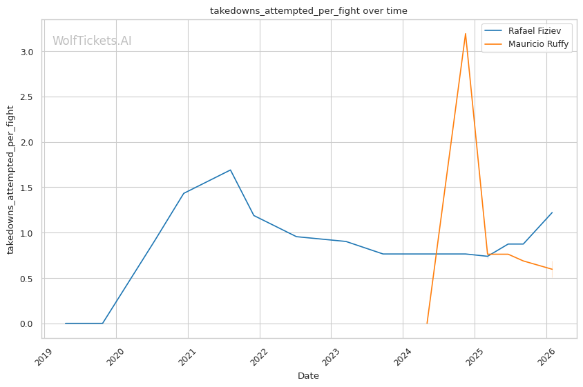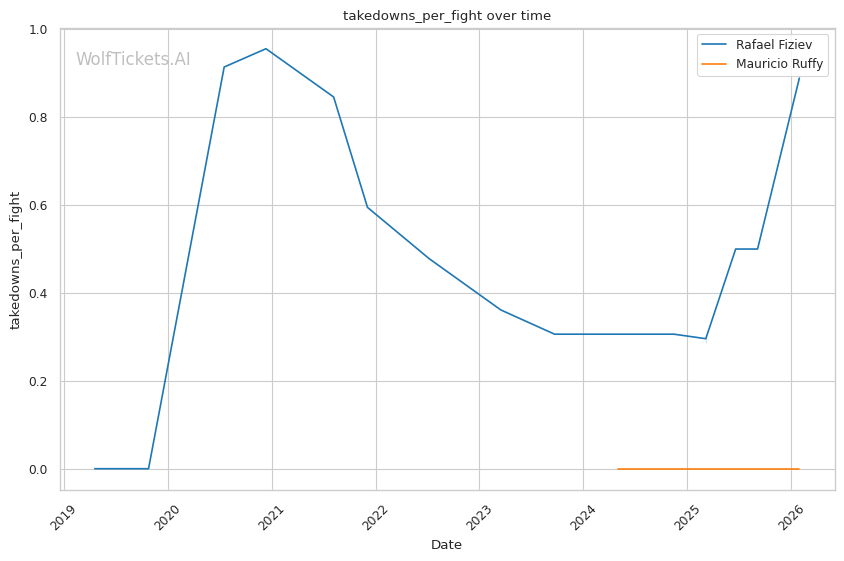The wrestling dynamic favors Fiziev. He's shown willingness to mix in takedowns when striking gets even. Ruffy froze against BSD's wrestling threat. Even the threat of a takedown could suppress Ruffy's output the way it did against Saint Denis.