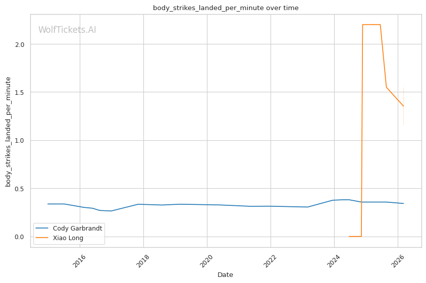 Championship Rounds (if applicable): This is a three-round fight, but even Round 3 presents problems for Garbrandt. Against Barcelos, he was nearly finished in Round 3 after being taken down off a leg kick. Long's cardio appears solid based on his volume numbers, while Garbrandt's late-fight struggles are well-documented.