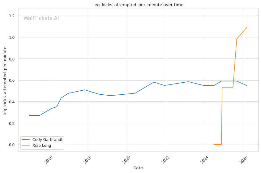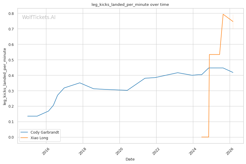 His pressure style could present problems. Long applies relentless forward movement, which historically bothers Garbrandt. Against Lee, Long managed the pace effectively and forced his opponent to defend constantly. His leg kicks (0.70 per minute) target a known weakness in Garbrandt's game.