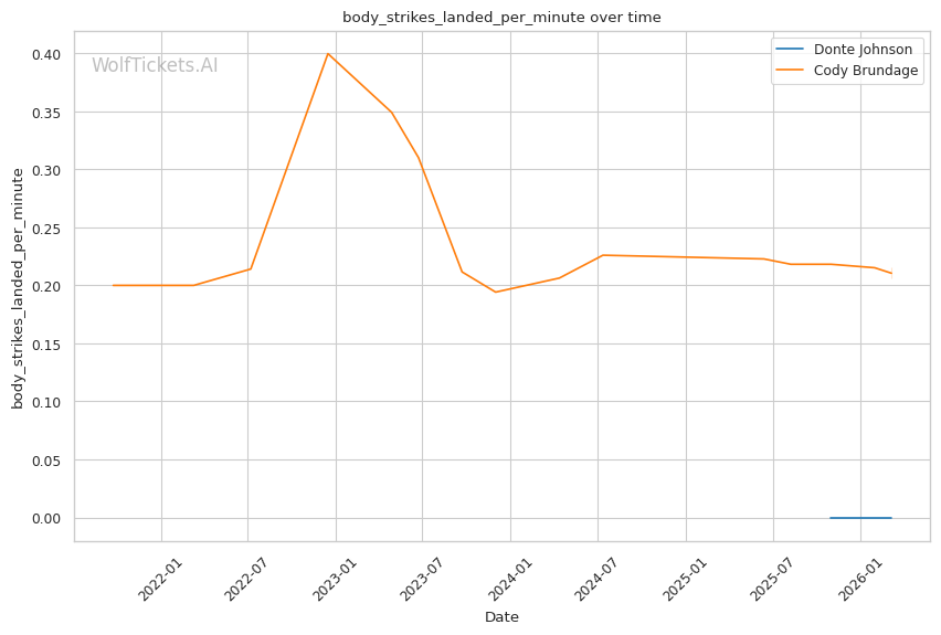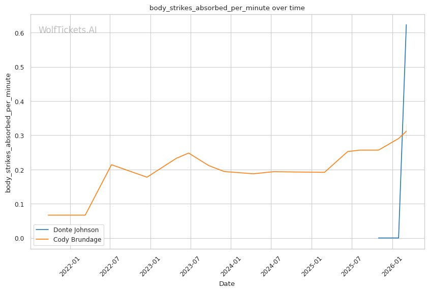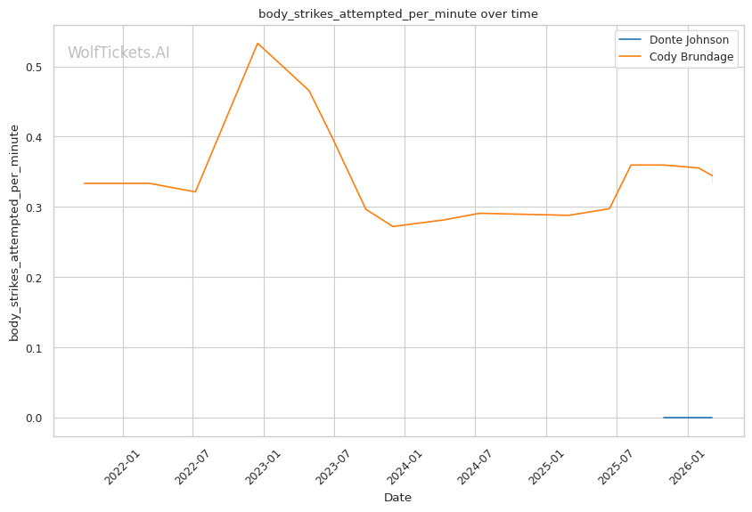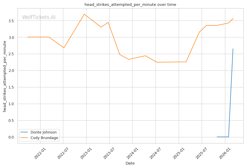 Johnson's pressure striking and willingness to mix in takedowns should cause problems for Brundage. Johnson's left hand from the southpaw stance could exploit Brundage's tendency to leave his chin exposed when pressing forward. Brundage has shown vulnerability to power punchers who can time his entries, and Johnson carries legitimate knockout power.