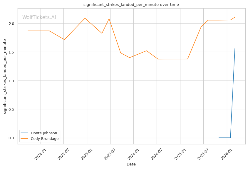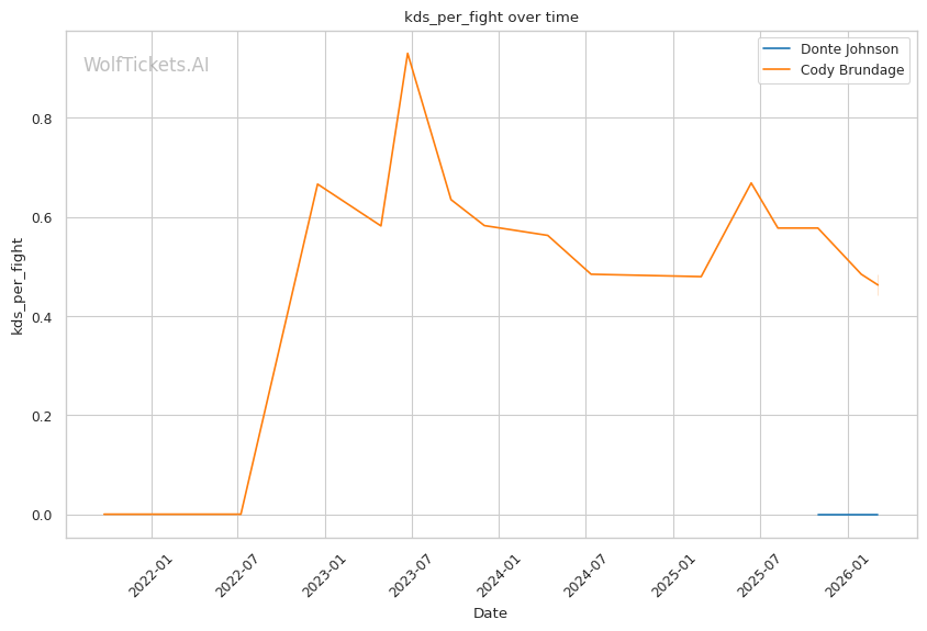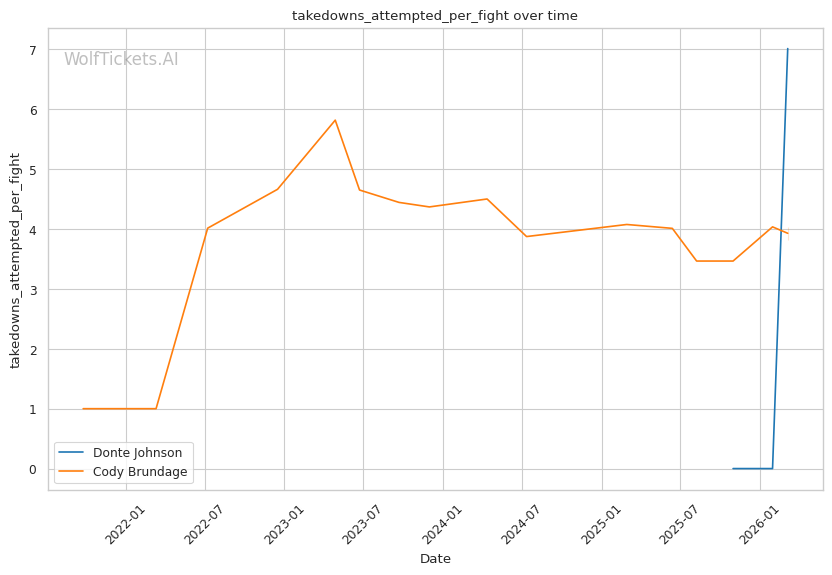 Donte Johnson should handle Cody Brundage without much trouble. Johnson's pressure striking, improved wrestling, and finishing ability match up well against a fighter who has been stopped in his last outing and struggles defensively. Brundage's path to victory requires Johnson to make a critical error, and nothing in Johnson's brief UFC career suggests he is prone to such mistakes. WolfTicketsAI has Johnson winning, and the data supports that conclusion.