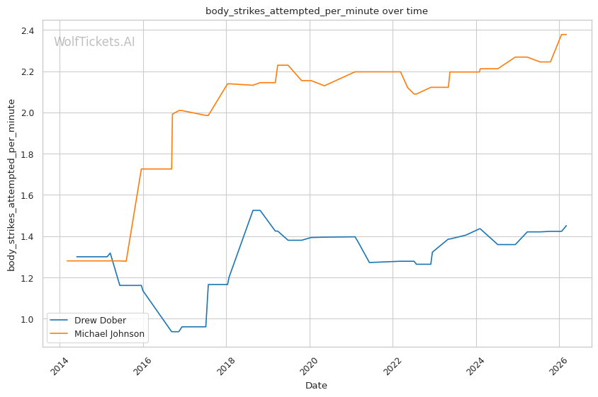 Mid-Fight Adjustments: If Dober survives the early exchanges, his pressure could begin to wear on Johnson. Dober's cardio under pressure has proven reliable. He maintained output through three rounds against Prepolec despite absorbing significant damage. Johnson's output has historically declined in later rounds.