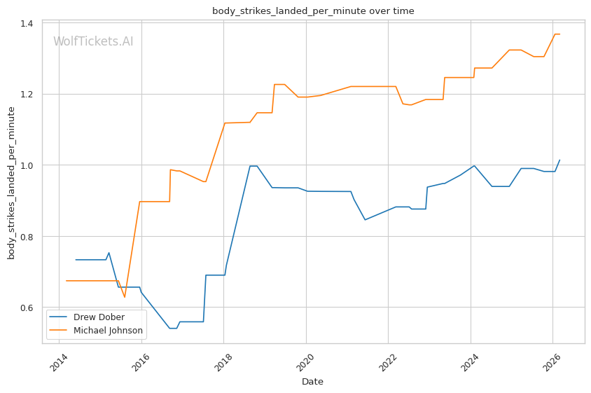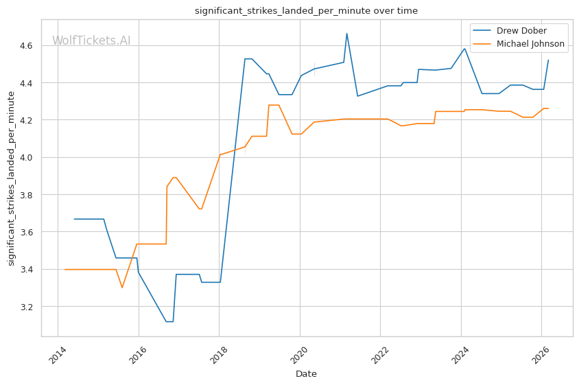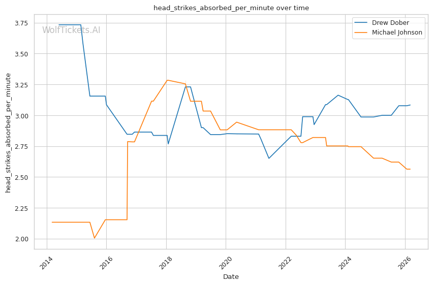 | Stat | Drew Dober | Michael Johnson | Weight Class Average | |