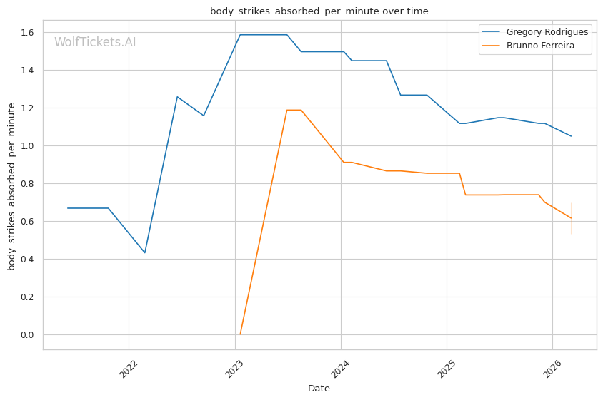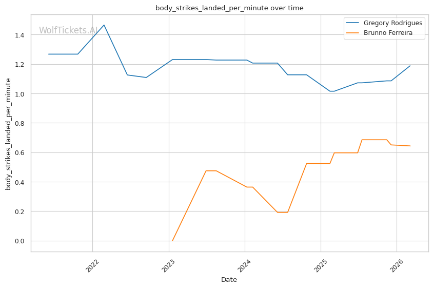 | Stat | Gregory Rodrigues | Brunno Ferreira | Weight Class Average | |