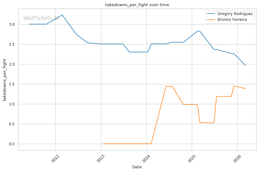 Ferreira's pattern-recognition knee strikes could exploit Rodrigues's tendency to duck when pressured. If Rodrigues slips inside as he likes to do, Ferreira has shown he can time stepping knees to catch opponents lowering their heads.