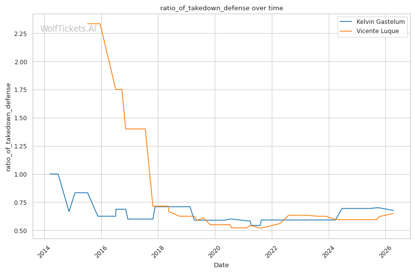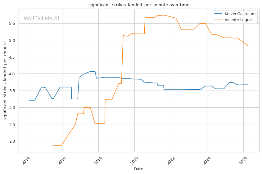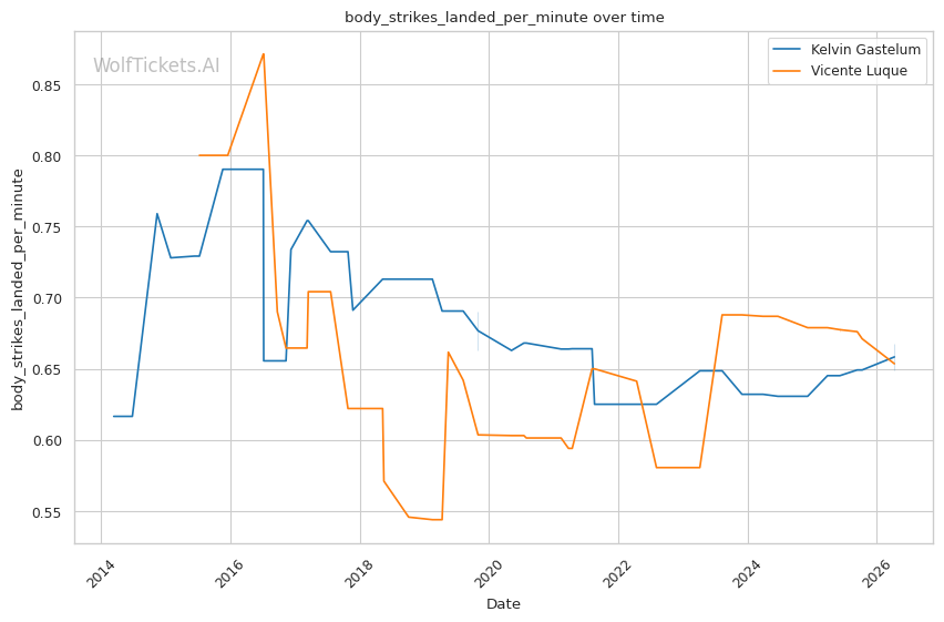 | Stat | Kelvin Gastelum | Vicente Luque | Weight Class Average | |