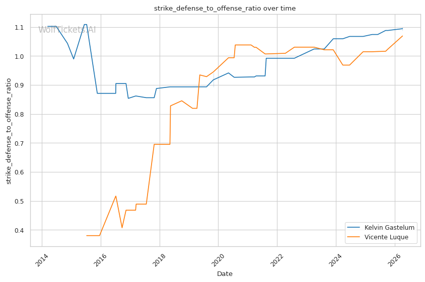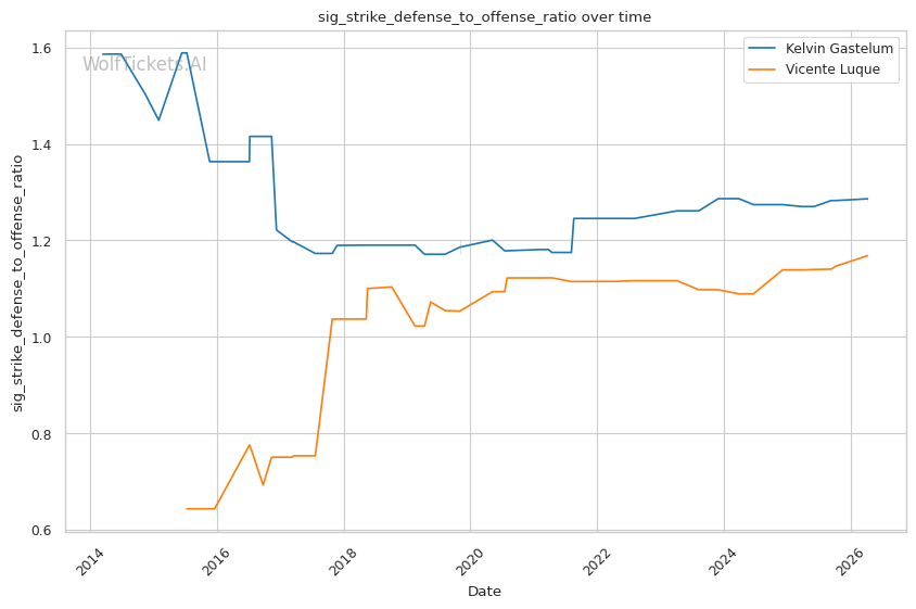 | Significant Striking Defense to Offense Ratio | 128.97% | 116.83% | 100.19% | |