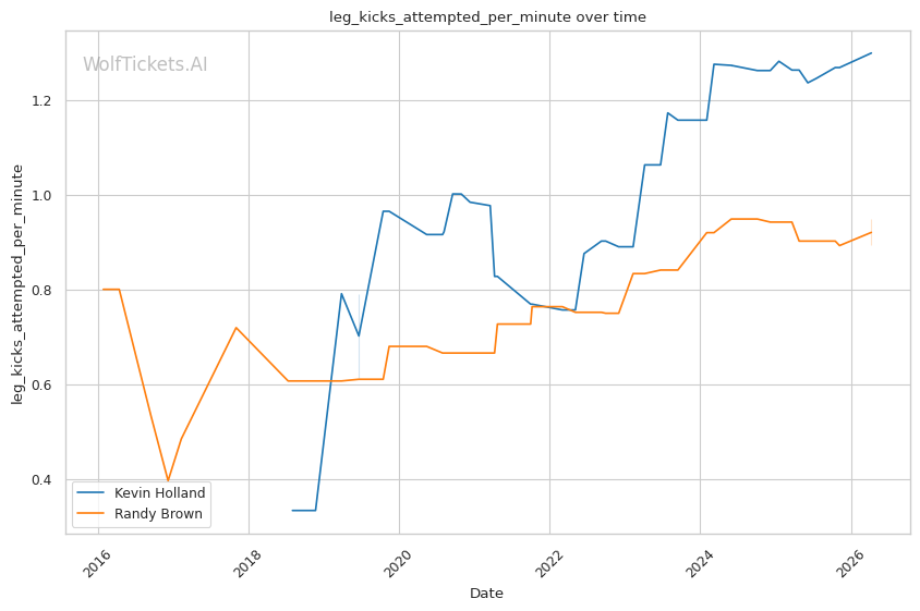 | Leg kicks Attempted per Minute | 1.299 | 0.948 | 0.797 | |