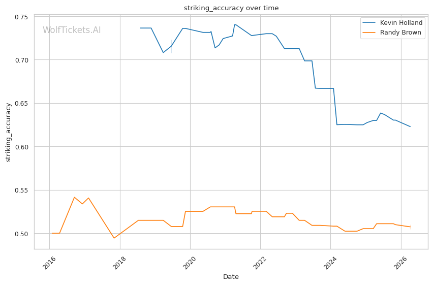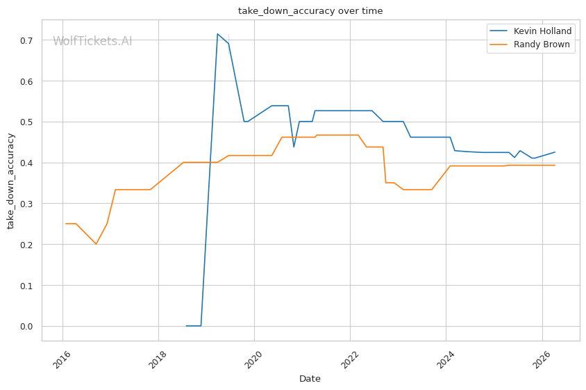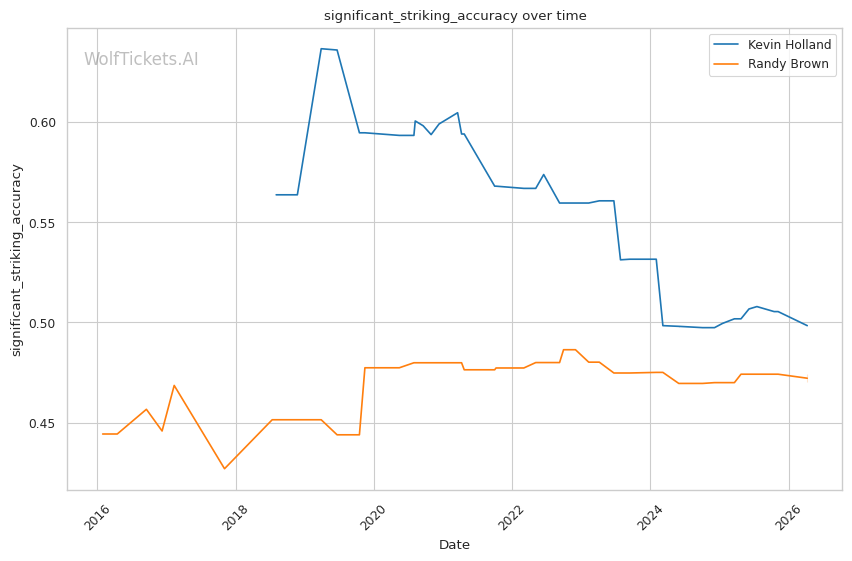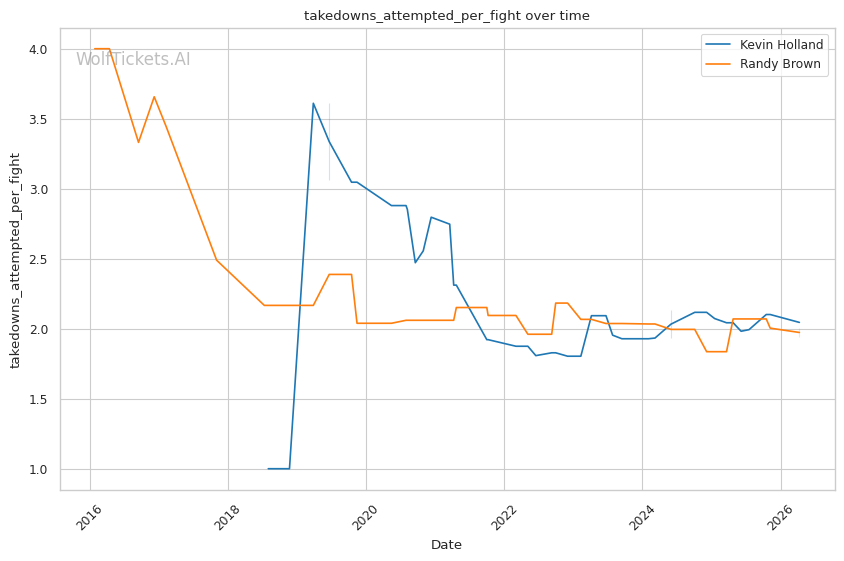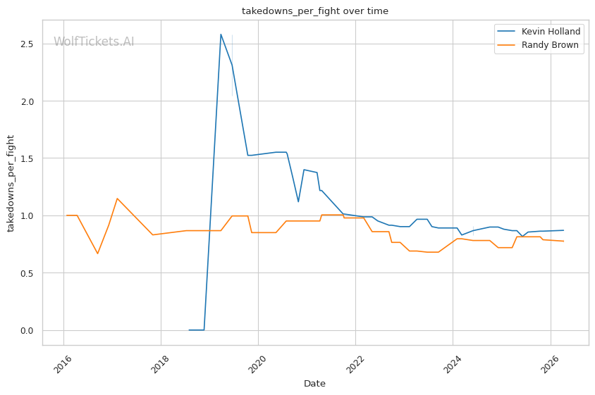 Brown's 36% takedown defense is concerning, but Holland rarely shoots. Holland averages less than one takedown per fight and has shown little interest in wrestling-heavy gameplans. This fight likely stays standing.