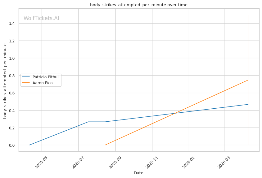 Wrestling Defense Has Deteriorated: Rodriguez took him down and controlled him despite wrestling historically being Pitbull's safety net. His recent takedown defense ratio is just 0.31. Against a wrestler like Pico who averages nearly 9 takedowns per fight, this is a massive red flag.
